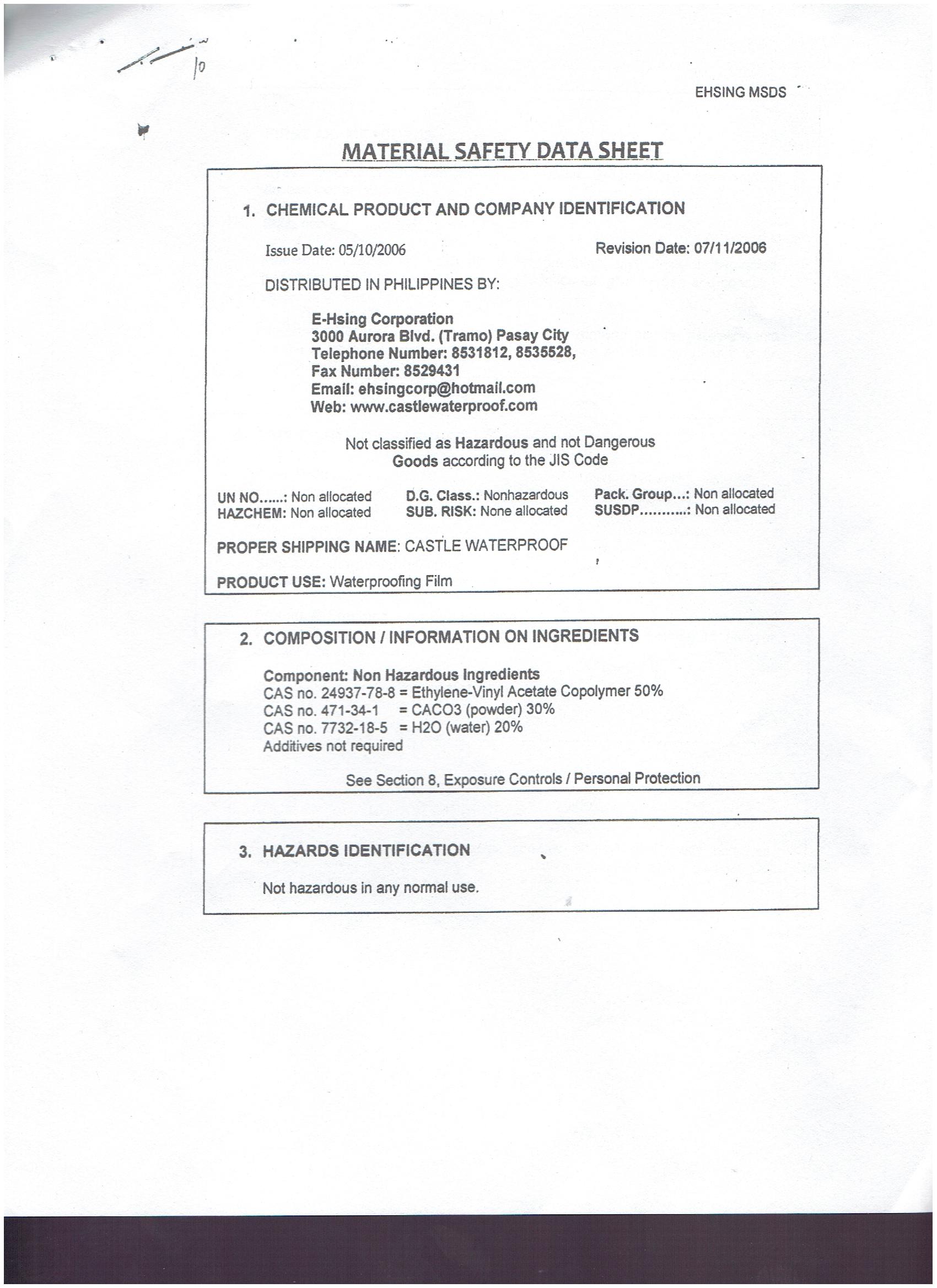 Castle MSDS